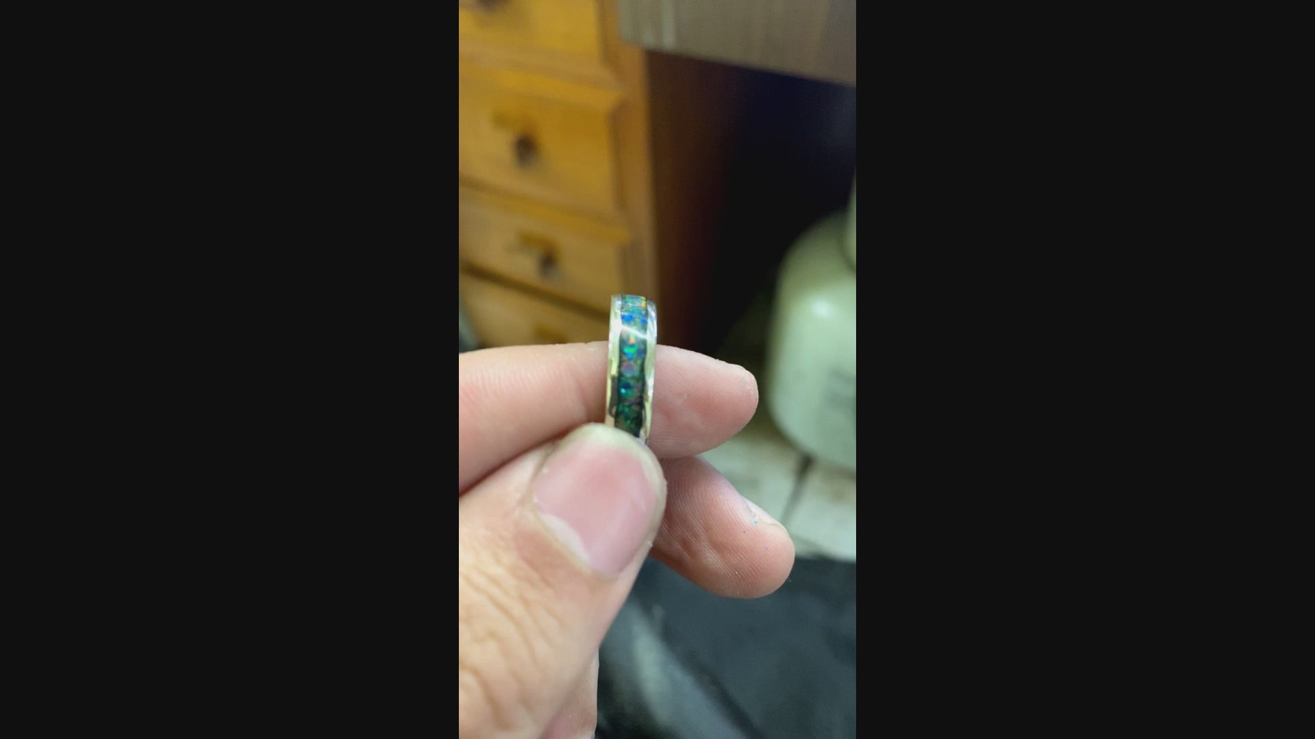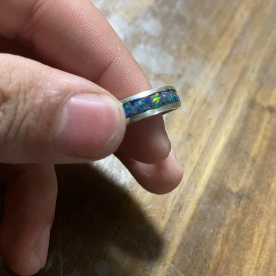 Design: Full circle crushed opal inlay band